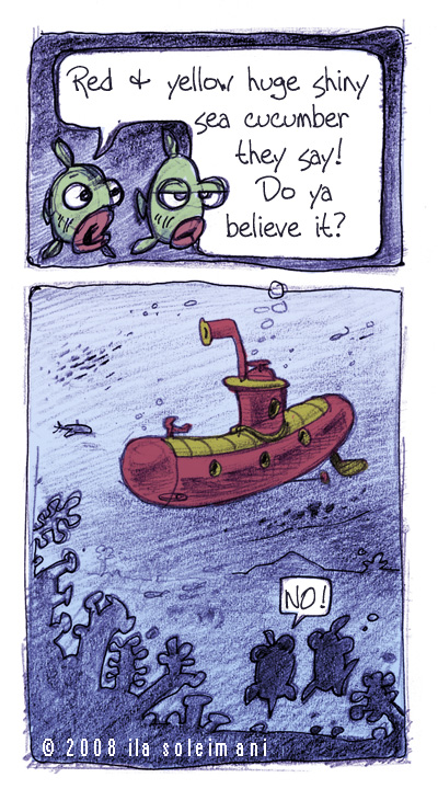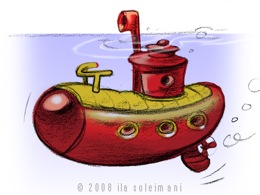 submarine that looked like a big curvy hot dog with many holes as windows.